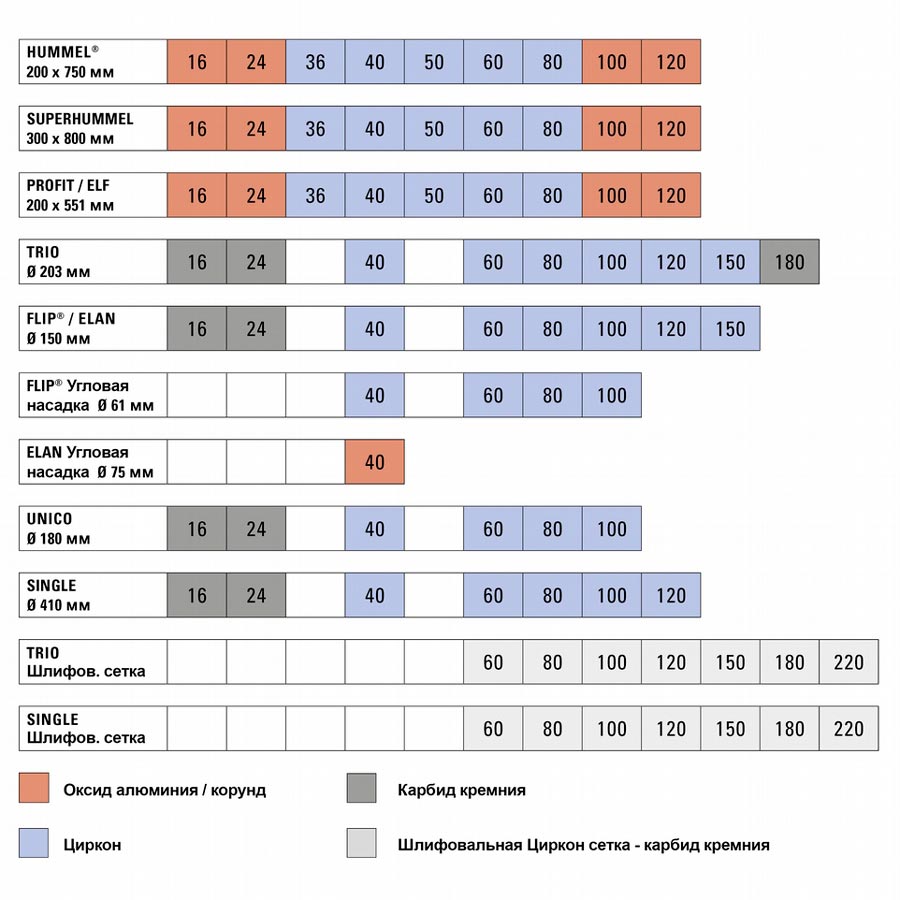 Ассортимент LAGLER. постоянно обновляется, для того, чтобы вы могли приобрести все новинки из одних рук. По экономическим соображениям доступными для машин LAGLER. являются только определённые зернистости и материалы. Другие комбинации зерна и материала невозможны.