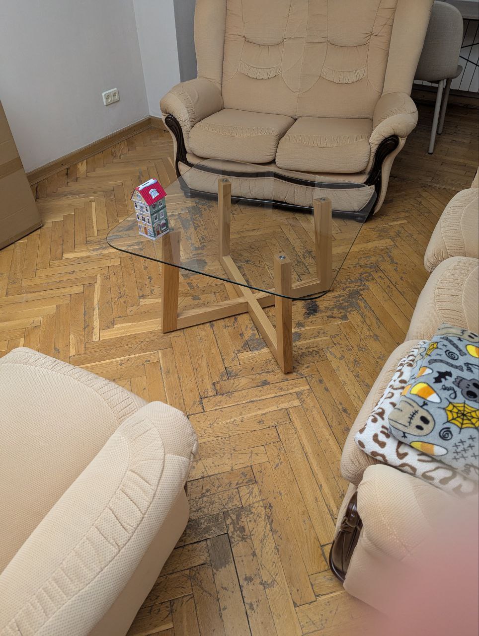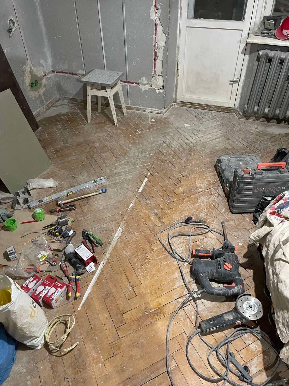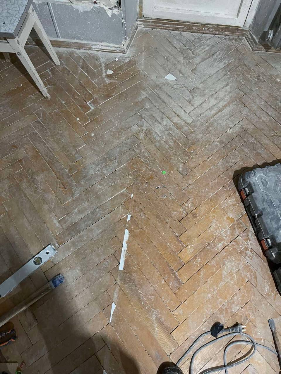 В другій кімнаті(~25кв м) він роз’їзджений, але не так сильно. Ще тут кімнату об’єднали з балконом і там де був балкон паркет сильно люфтить і іноді провалюється — хотілось би це виправити і так само зробити гарно