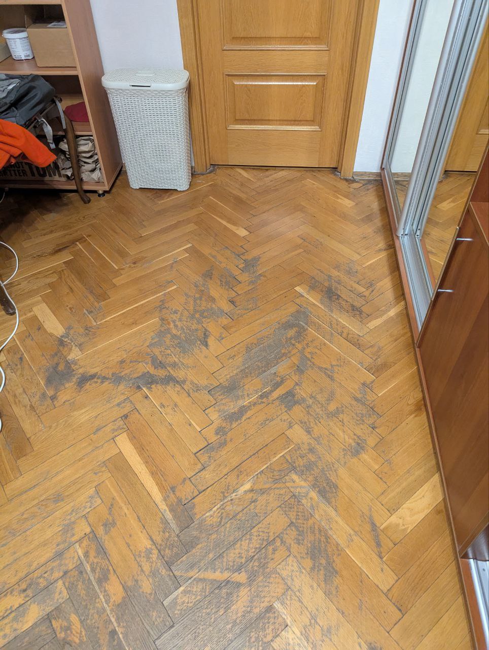 В одній кімнаті(~15кв м) дуже сильно проїжджений паркет. тут хотілось би прям кардинально виправити його