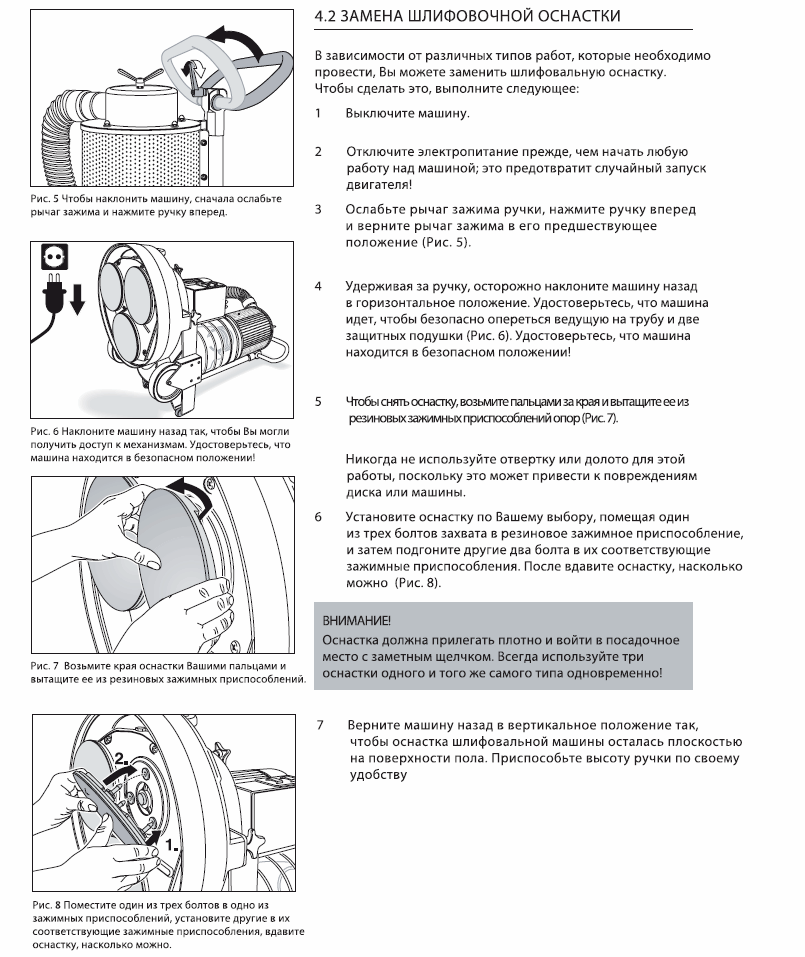 В зависимости от различных типов работ, которые необходимо провести, Вы можете заменить шлифовальную оснастку. Чтобы сделать это, выполните следующее: